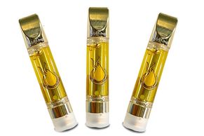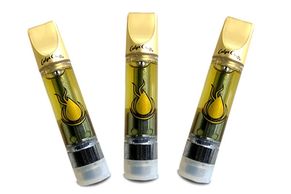 These cartridges are made from a clean and clear high quality distillate base with terpenes from fresh frozen material added in. Frozen terps from the freshest non-dried flower make for the best flavor! Look for the silver Calyx Crafts cart with gold tips and you’ll know!